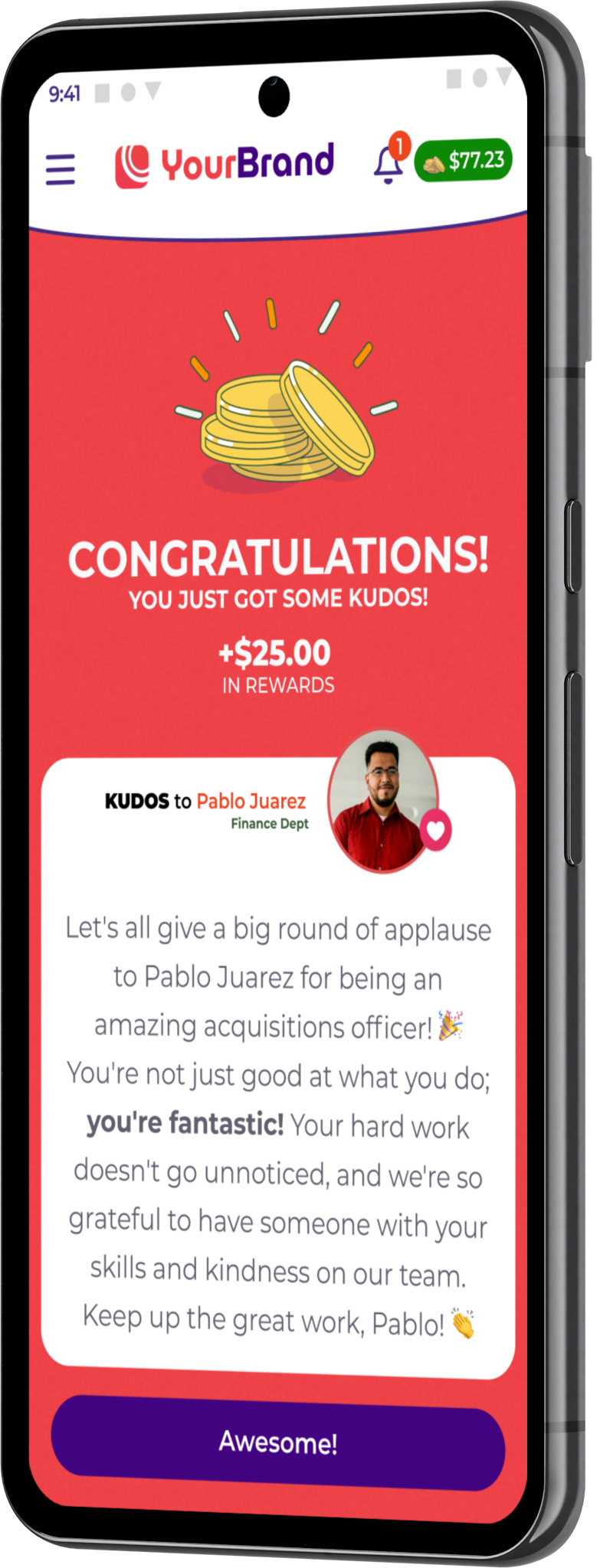 You can choose to just send a recognition or pair it with a gift card or cash reward.